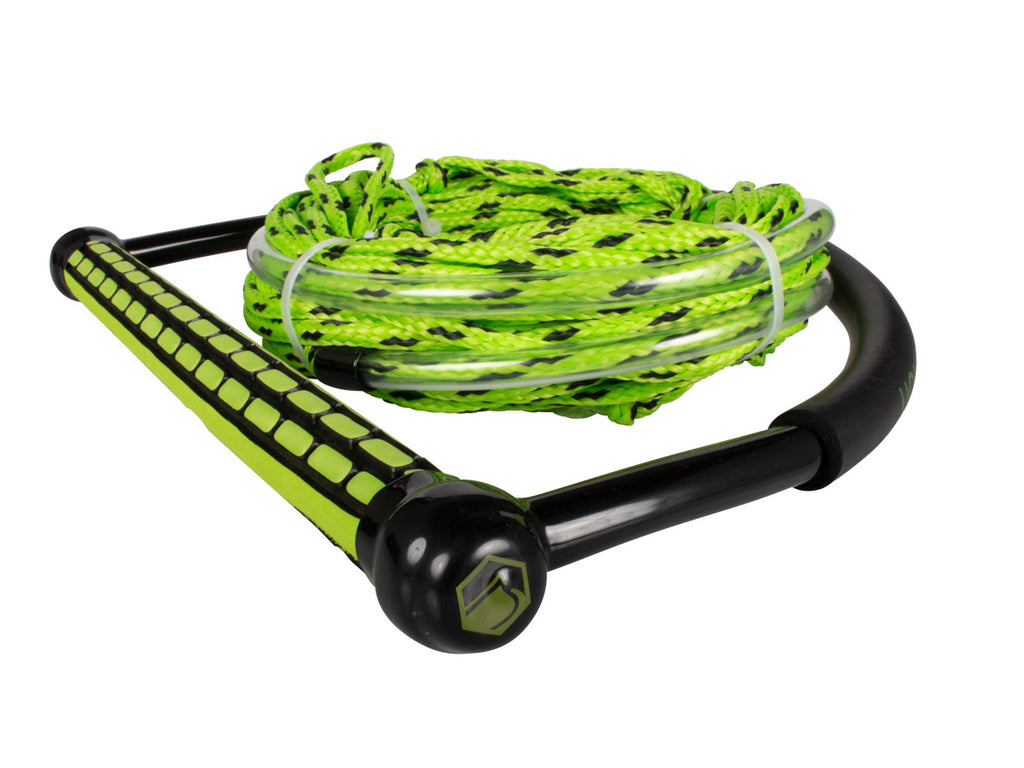 The TR9 wake combo delivers price point performance for all. The machined EVA grip and built in floats keeps the TR9 on the surface. The PE Fiber Static mainline resists tangles. The TR9 is a fun and economical way to keep you connected to the boat.