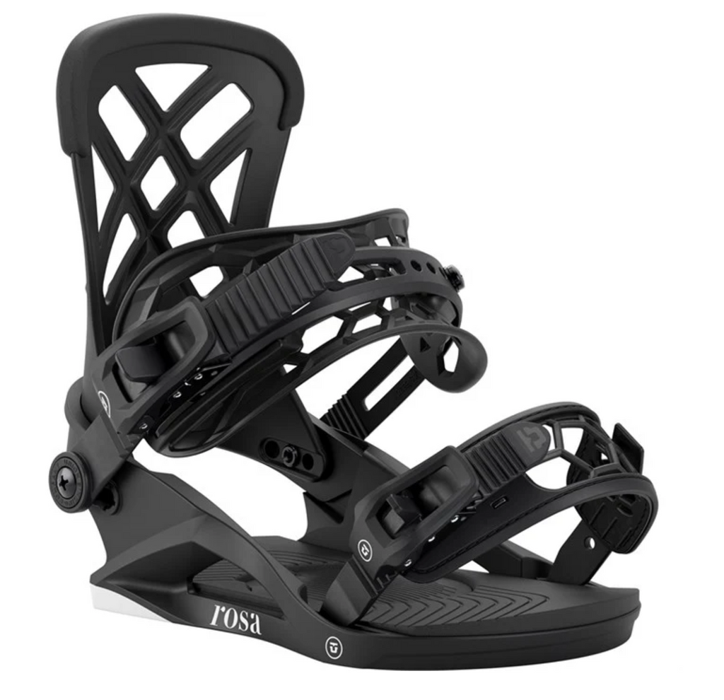 Entry level doesn't have to mean bottom of the barrel. The Union Rosa Snowboard Bindings bring top shelf technology to the people with a lightweight, user friendly design inspired by Union's pro-level bindings. Their featherweight design and approachable flex makes for an easygoing ride that won't hold you back as you progress, perfect for the rider growing in confidence day by day.